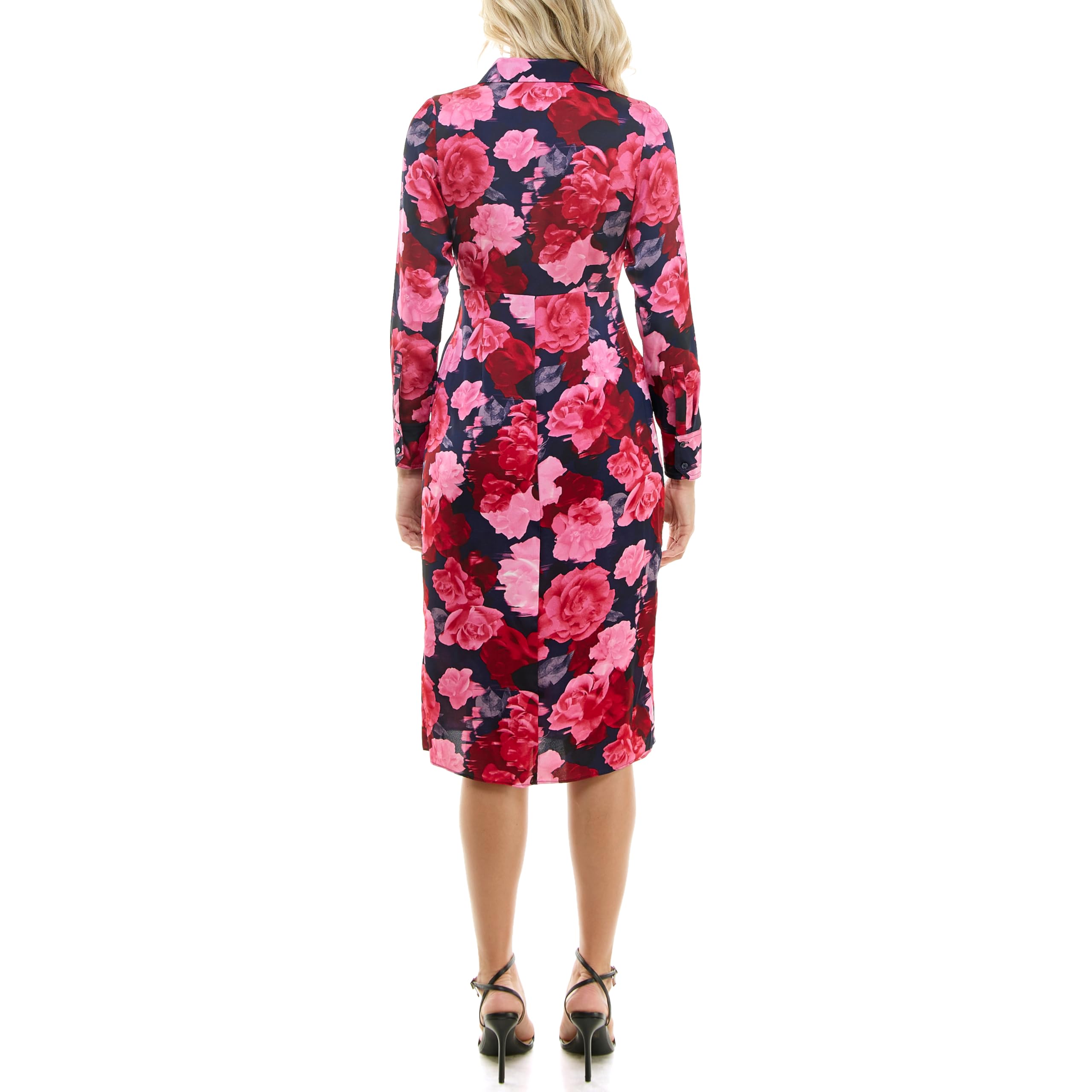 Description:This midi dress features a dark base with bold red and pink floral print for a romantic and eye-catching look. The collared neckline adds a polished touch, while the long sleeves and softly shaped waist create a flattering and elegant silhouette. Finished in a midi length, this dress looks graceful and versatile for dinners, parties, gatherings, vacations, and everyday dressy wear.